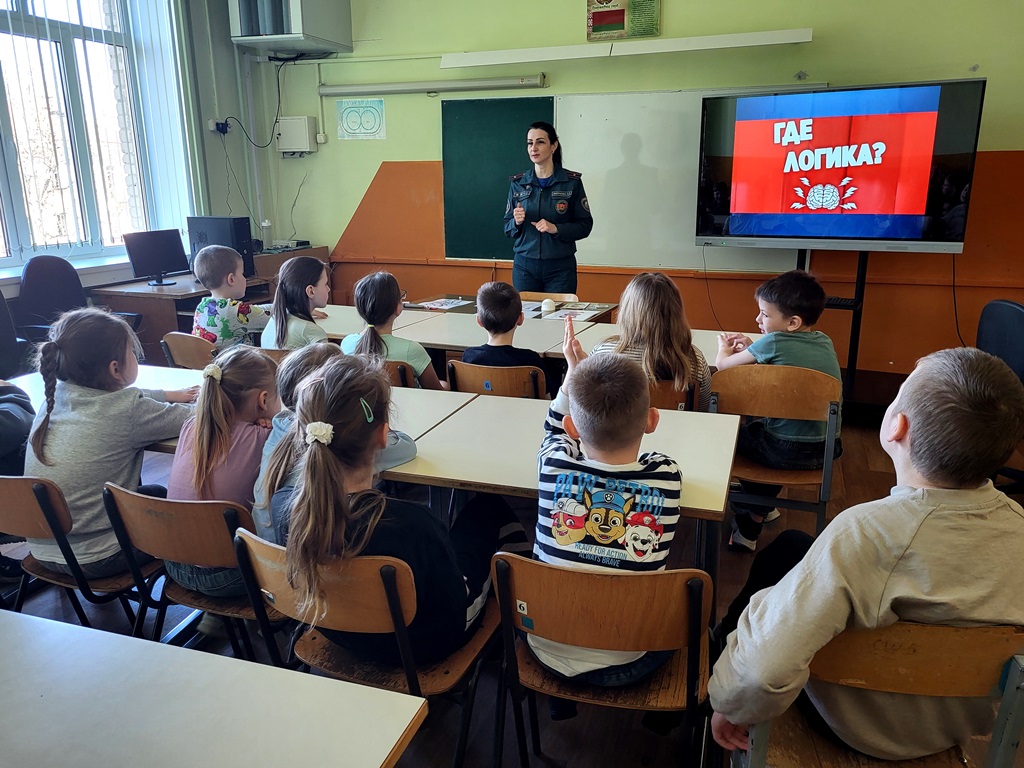 Далее представители МЧС провели с ребятами интеллектуальную игру «Где логика?». Игровой формат вызвал живой интерес у школьников. Ребята активно отвечали на вопросы, дополняли ответы друг друга и дружно разбирали сложные ситуации.